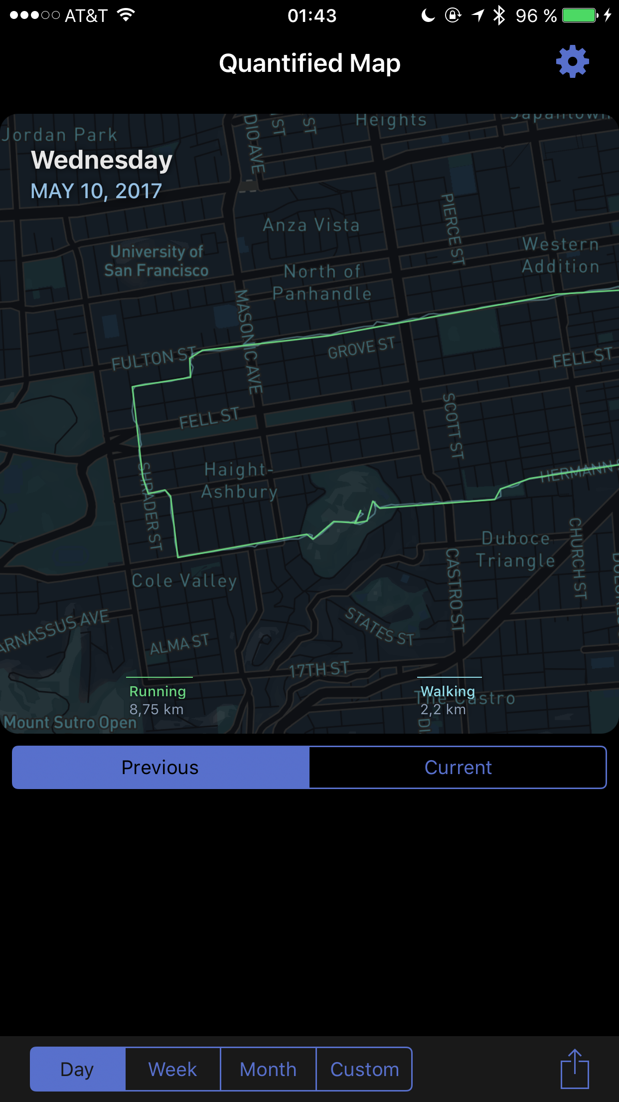 To use this App, enable the Quantified Tracker and/or connect with other services (If you do not have Swarm or Strava, you can download them on the AppStore for free). Moves is now discontinued, but if you have a backup of your data, you can import it in Quantified Map.